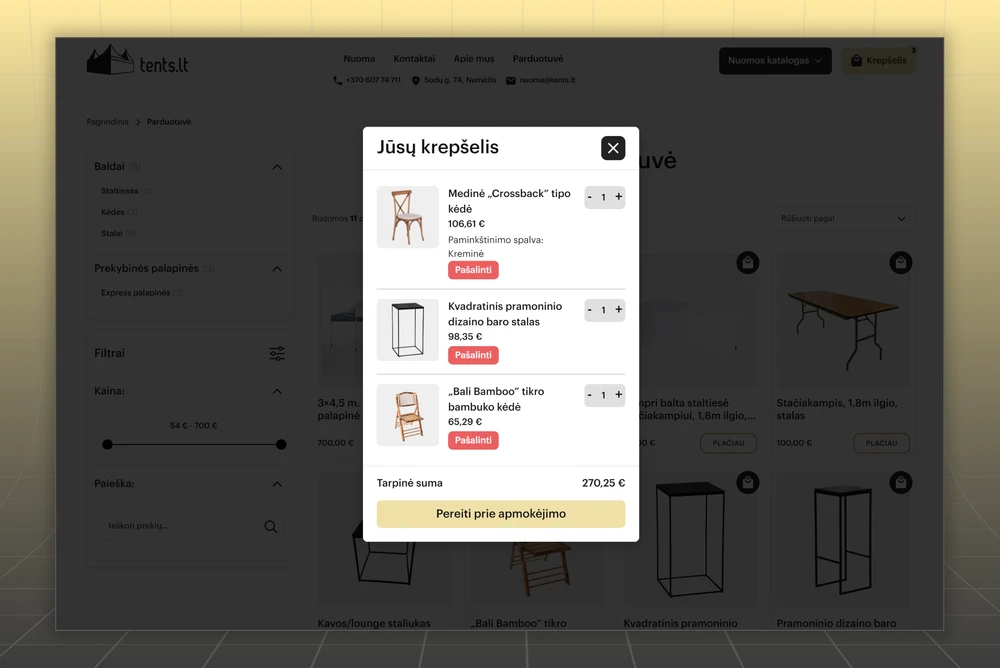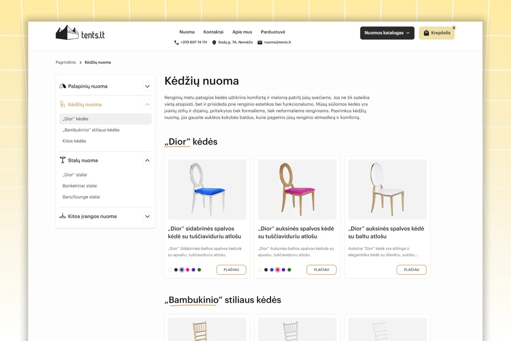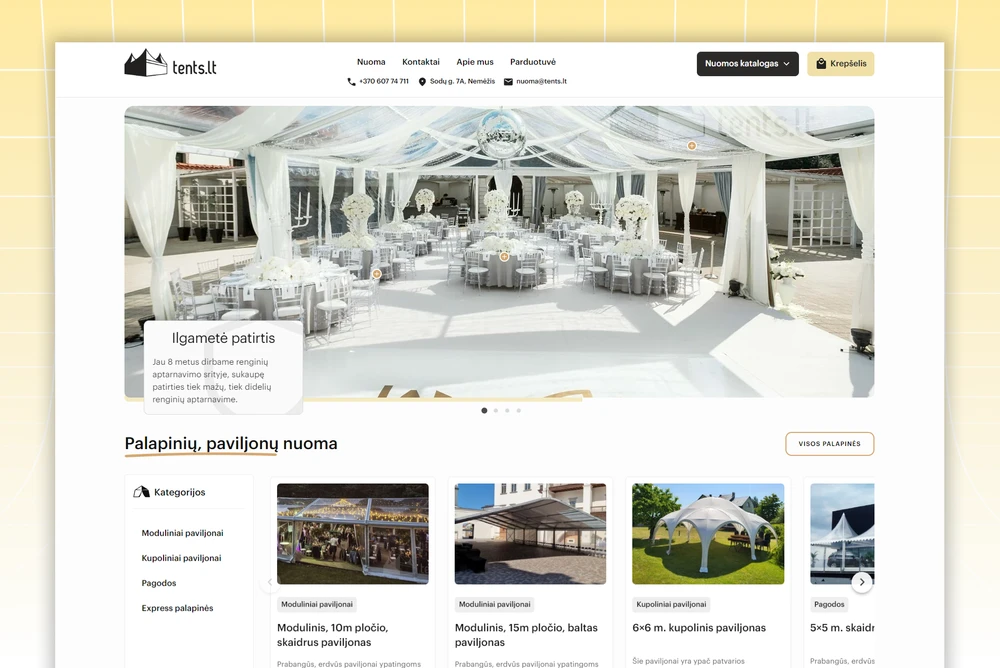 - Design and build a website for a local rental business specializing in event pavilions and wedding accessories.